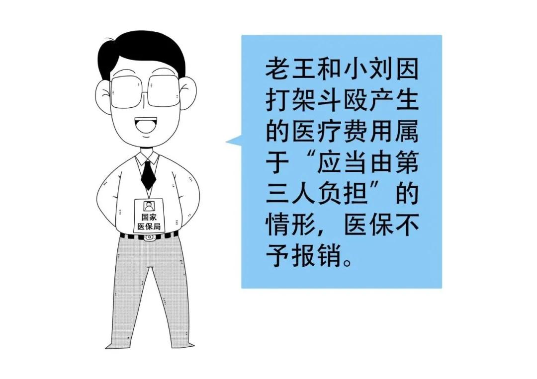 比如因打架斗殴产生的医疗费用,就属于上述不纳入基本医疗保险基金支付范围的“应当由第三人负担的”情形,因此不能予以基本医疗保险基金报销。如果医院在治疗费用结算时使用了医保报销,则医院的行为是违法的。
