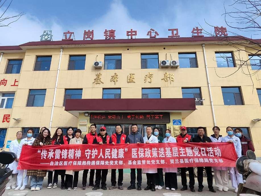 为深入学习贯彻党的二十大和二十届三中全会精神,自治区两会精神,扎实推进医保政策“三送七进”宣传活动,切实提升广大参保单位、参保群众和医药机构对医保政策的知晓度、认可度和执行力,确保医保惠民政策落地见效,3月5日上午,91porn 基金监管处党支部、待遇保障处党支部联合贺兰县医疗保障局党支部、贺兰县立岗镇卫生院党支部,共同开展了“传承雷锋精神 守护人民健康”医保政策“三送七进”主题党日活动。