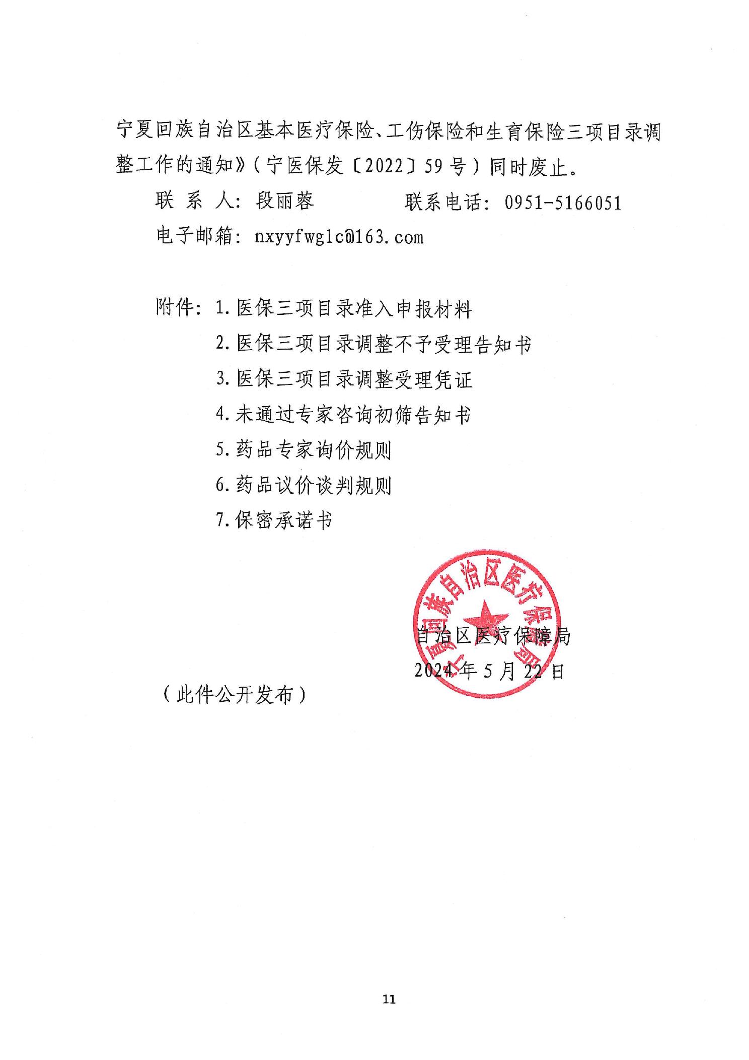 关于进一步完善宁夏回族自治区医疗保险、工伤保险和生育保险三项目录调整工作的通知